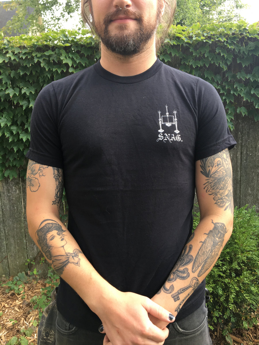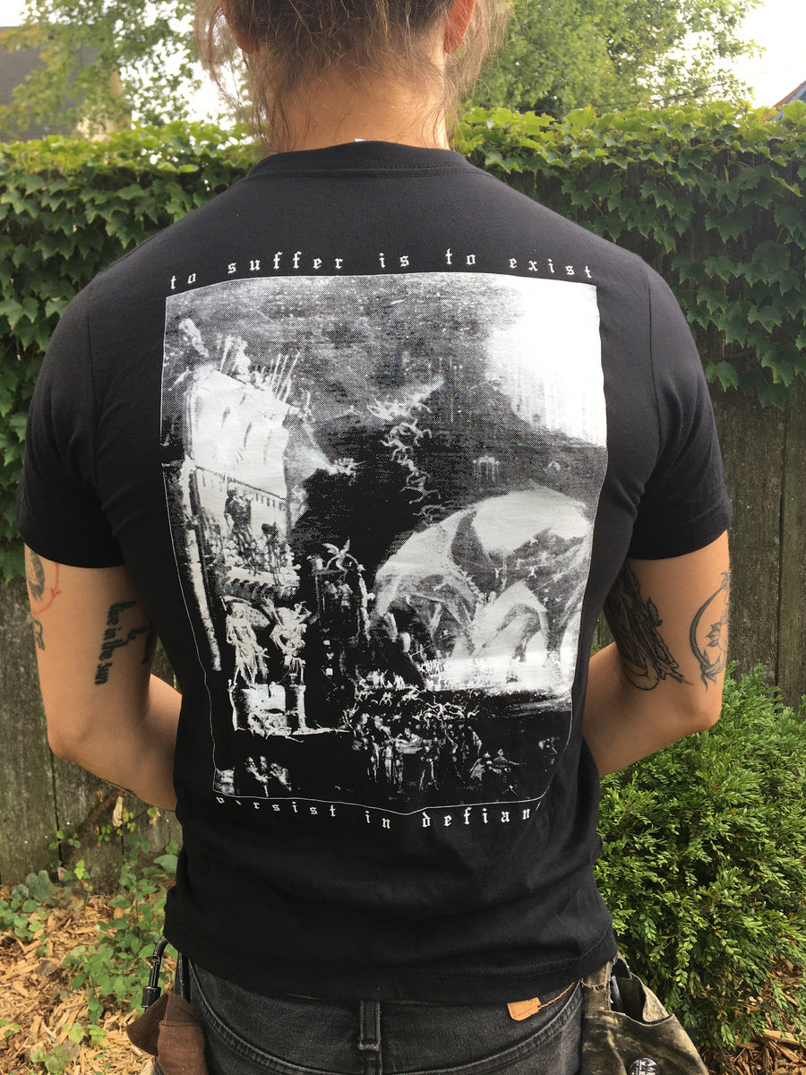 Text on the back of this shirt is Death Doulas of the Apocalypse by Sevan Arabajian-Lawson, whose poem strings this album together.